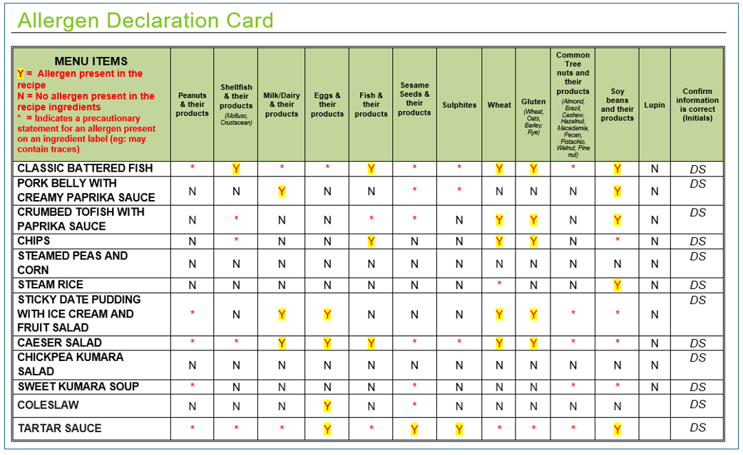 To maintain our commitment in providing foods that meet high safety and suitability standards, allergen declaration cards are one of the allergen management processes we have to ensure accurate information is provided for you to make safe and informed meal choices.